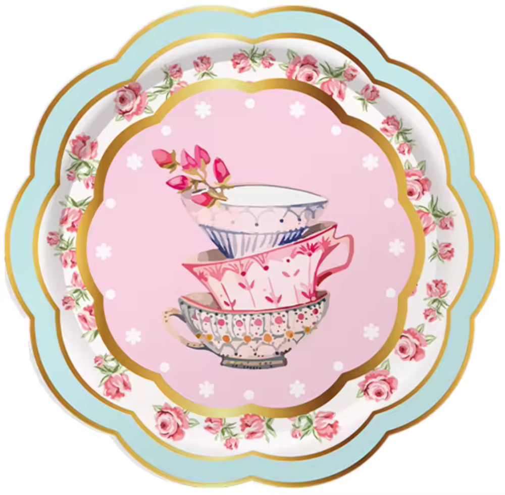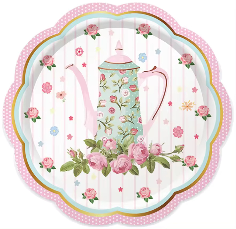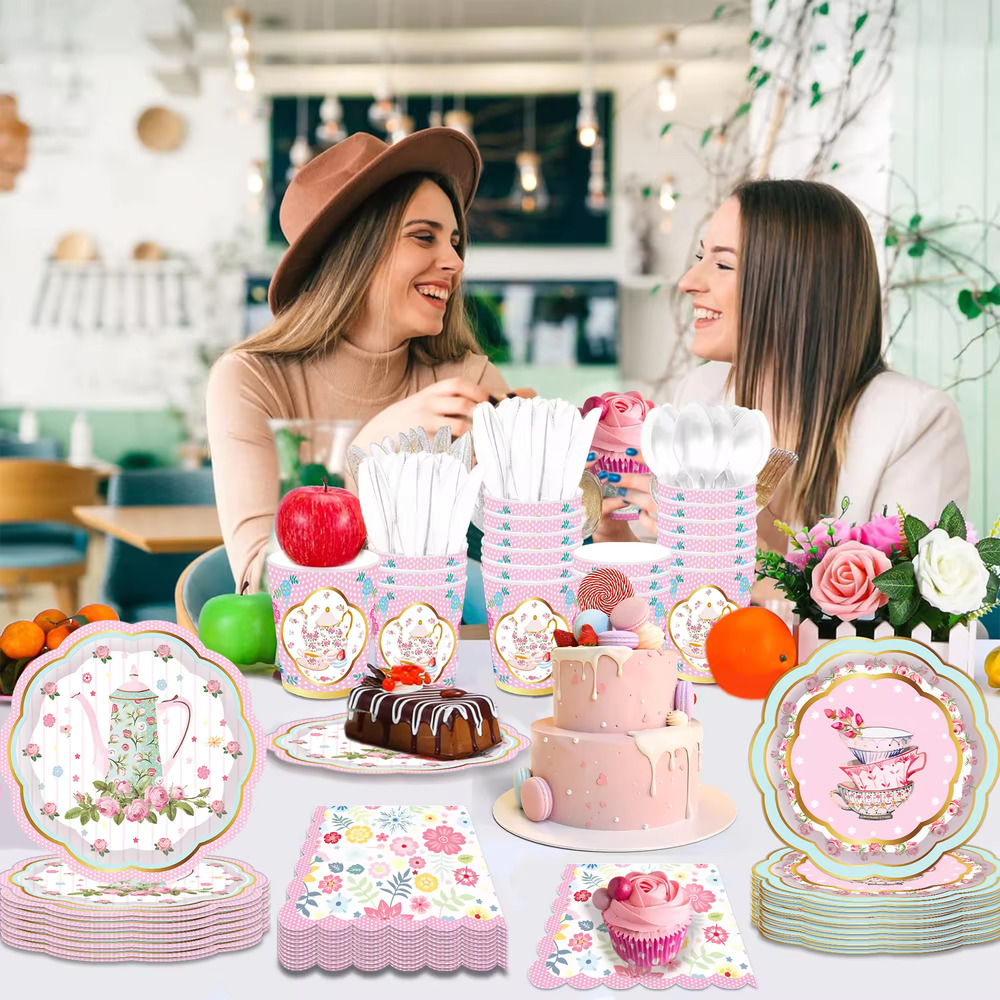 Elegant Floral Tea Party Paper Plates, Napkins, Tea Cups Set